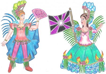 Quem nunca ouviu falar da metáfora “Um Mar de Rosas”? Muito utilizada para comparar a vida humana ao mar, como uma forma de dizer que nem tudo é como se deseja, “que nem tudo são flores”, que assim como o mar, na vida, nem tudo é belo, também tem seus problemas. A fantasia do Casal de Mestre-Sala e Porta-Bandeira da Flor de Lótus vem toda em tons de Azul, Verde, Vermelho e Rosa, representando o “Mar de Rosas”. Flores compõem toda a fantasia. A Porta-Bandeira dança com leveza, levando com maestria o pavilhão da escola.